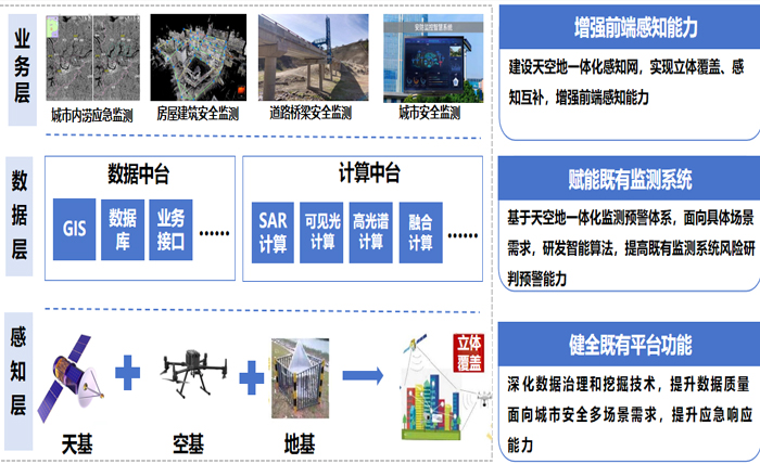 房屋健康監(jiān)測系統(tǒng)建立了天-空-地一體化監(jiān)測預(yù)警體系,天上通過衛(wèi)星遙感宏觀掃描,獲取房屋整體分布等信息;空中利用無人機(jī)搭載設(shè)備,近距離巡查屋頂破損等問題;地面靠各類傳感器深入關(guān)鍵結(jié)構(gòu)部位,實(shí)時(shí)采集物理參數(shù)數(shù)據(jù)。實(shí)現(xiàn)“能監(jiān)測、會(huì)預(yù)警、快處置”的分級分類治理,保障城市房屋安全。